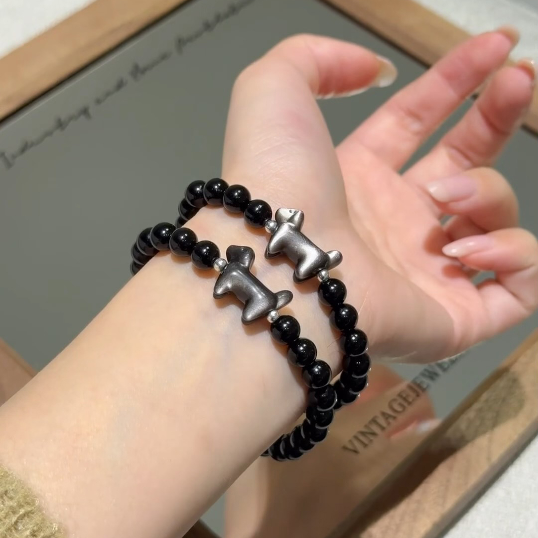 10A级正品天然黑曜石手链银曜石腊肠狗男女本命年招财单圈手串