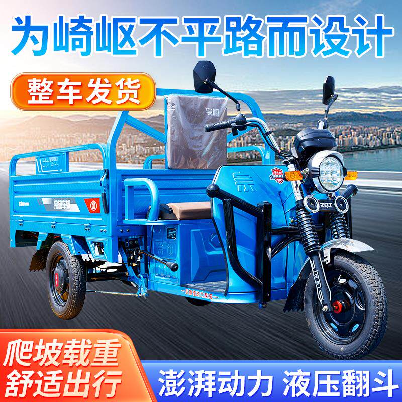 宗旗三轮车电动货运三轮车新款家用农用摆摊载重拉货快递车电瓶车