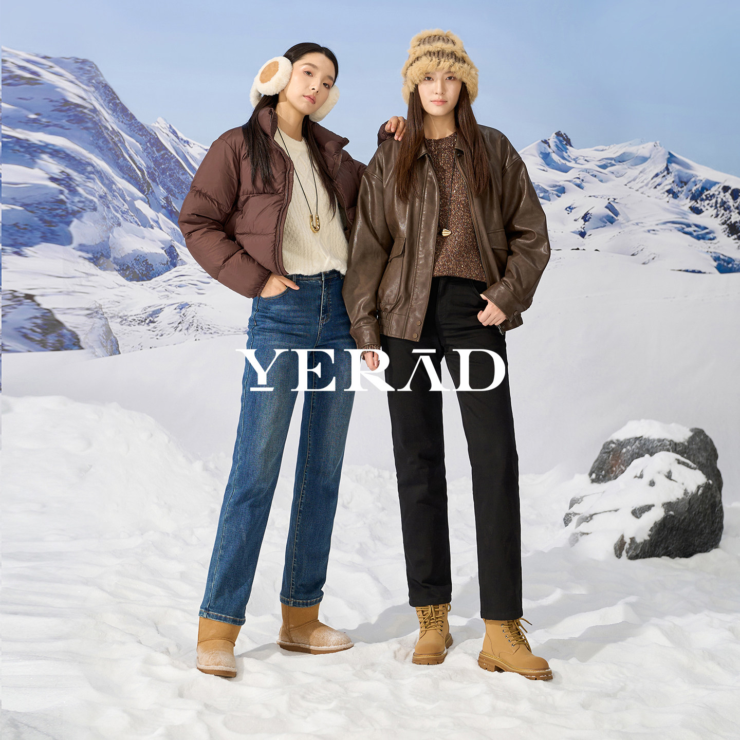2025年冬Outlets正品 高端AE系列松紧腰加厚牛仔长裤微弹羽绒裤女