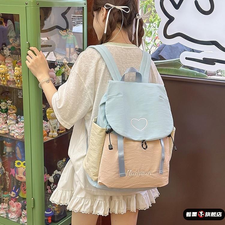 日系ins原创小清新双肩包女拼接背包高中生大学生上课书包通勤包