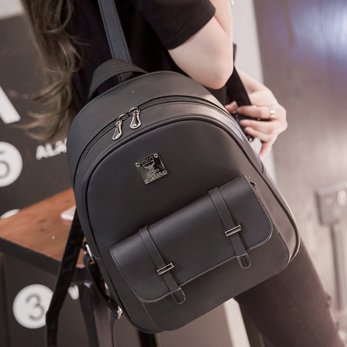 高颜值ins纯色字母简约小清新双肩包女韩版百搭中学生休闲小背包