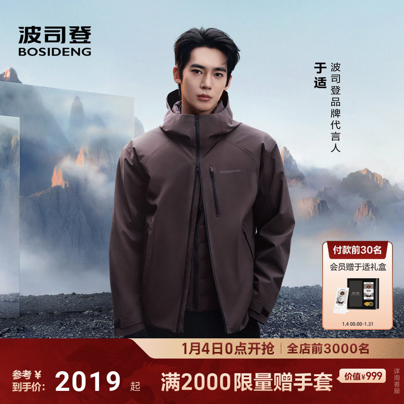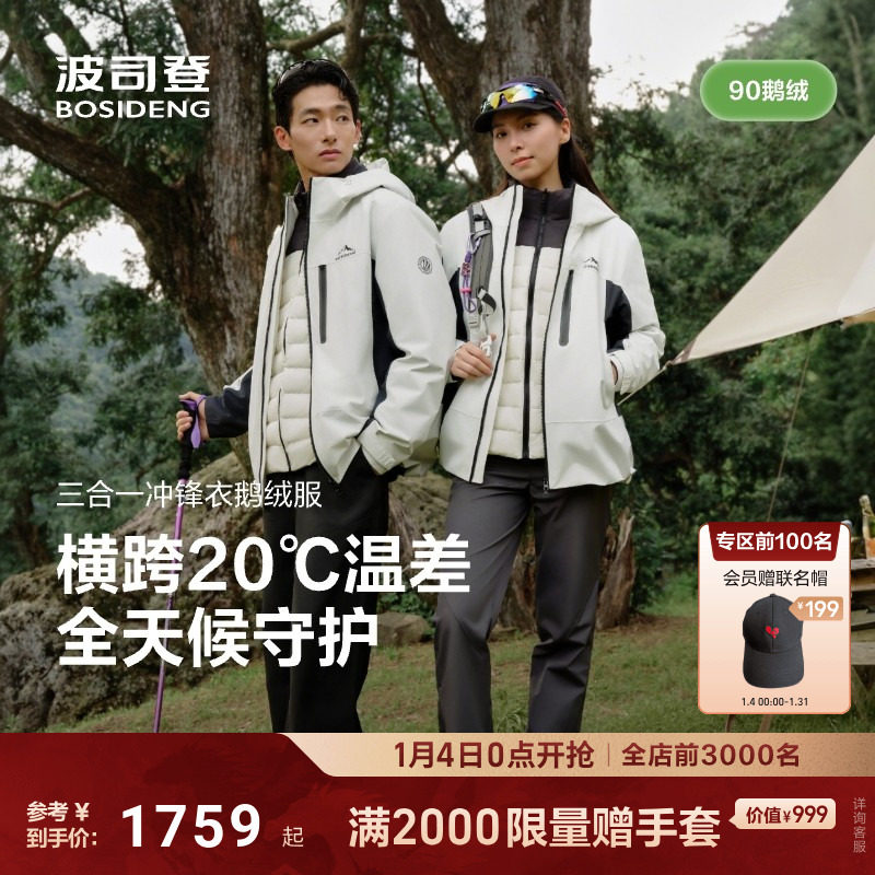 于适同款[叠变]波司登三合一25新款男短款冲锋衣鹅绒服情侣款户外