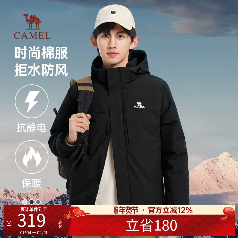 骆驼夹棉冲锋衣男女同款棉服情侣款新款连帽加绒加厚保暖棉衣外套