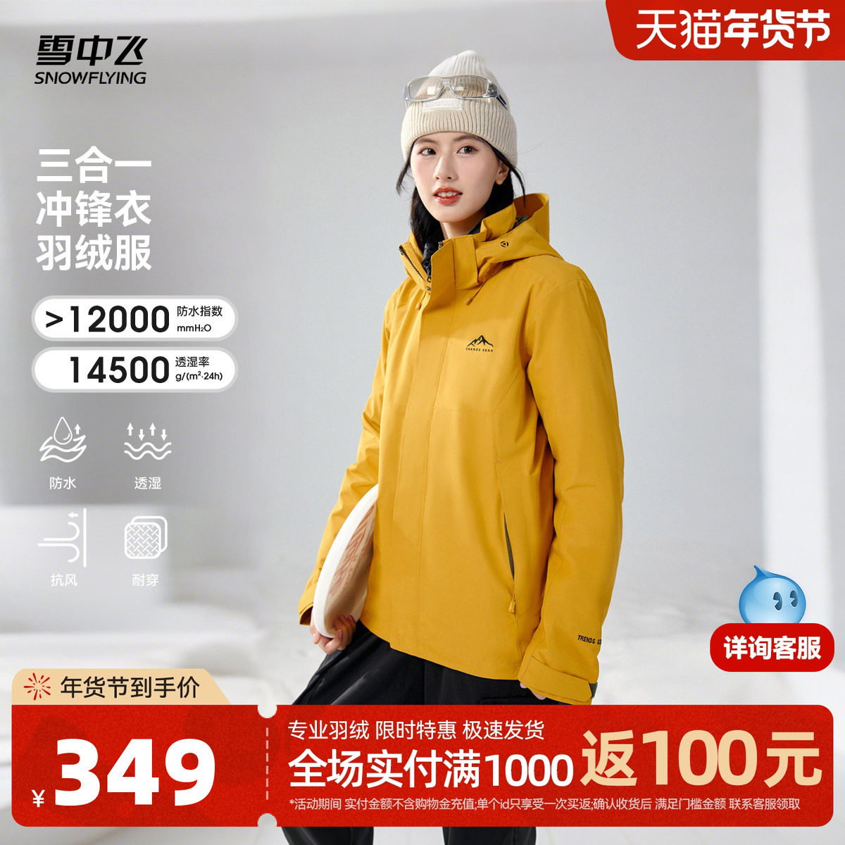 雪中飞2025冬新款男女款情侣三合一冲锋衣羽绒服户外运动防护