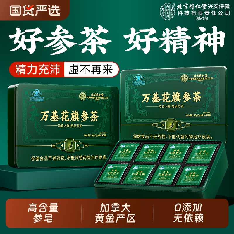北京同仁堂花旗参茶西洋参茶高含量大参皂苷抗疲劳过节日提神人参