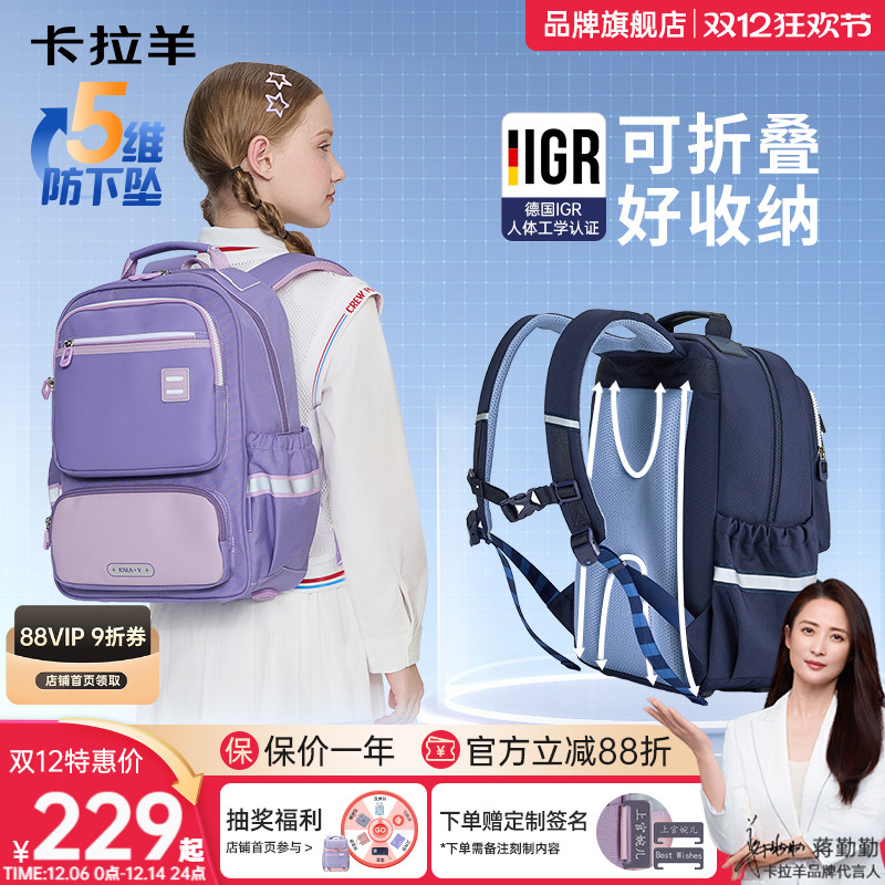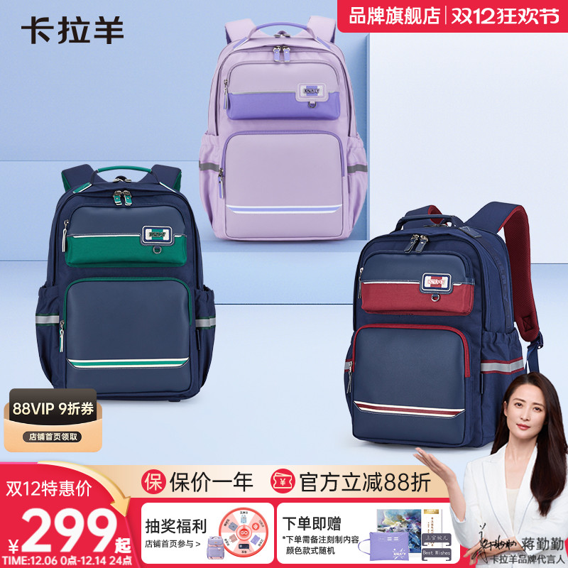 卡拉羊书包3-6年级小学生书包减负风琴书包儿童双肩包男女生中学生背包男孩大容量女孩防水书包品牌旗舰正品