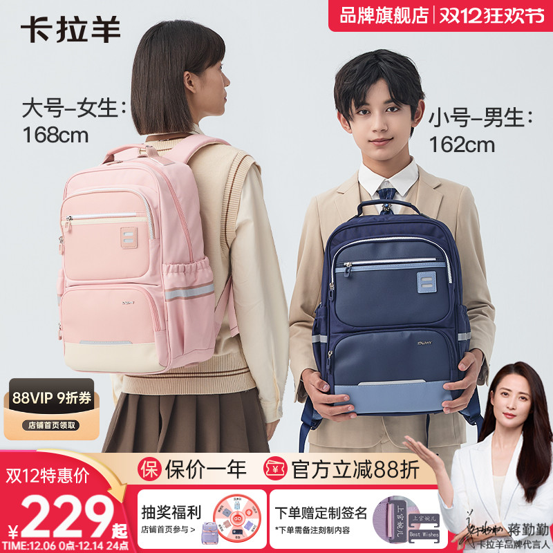 卡米羊初中生男减负护脊中学生书包2025新款高中女生小学生双肩包