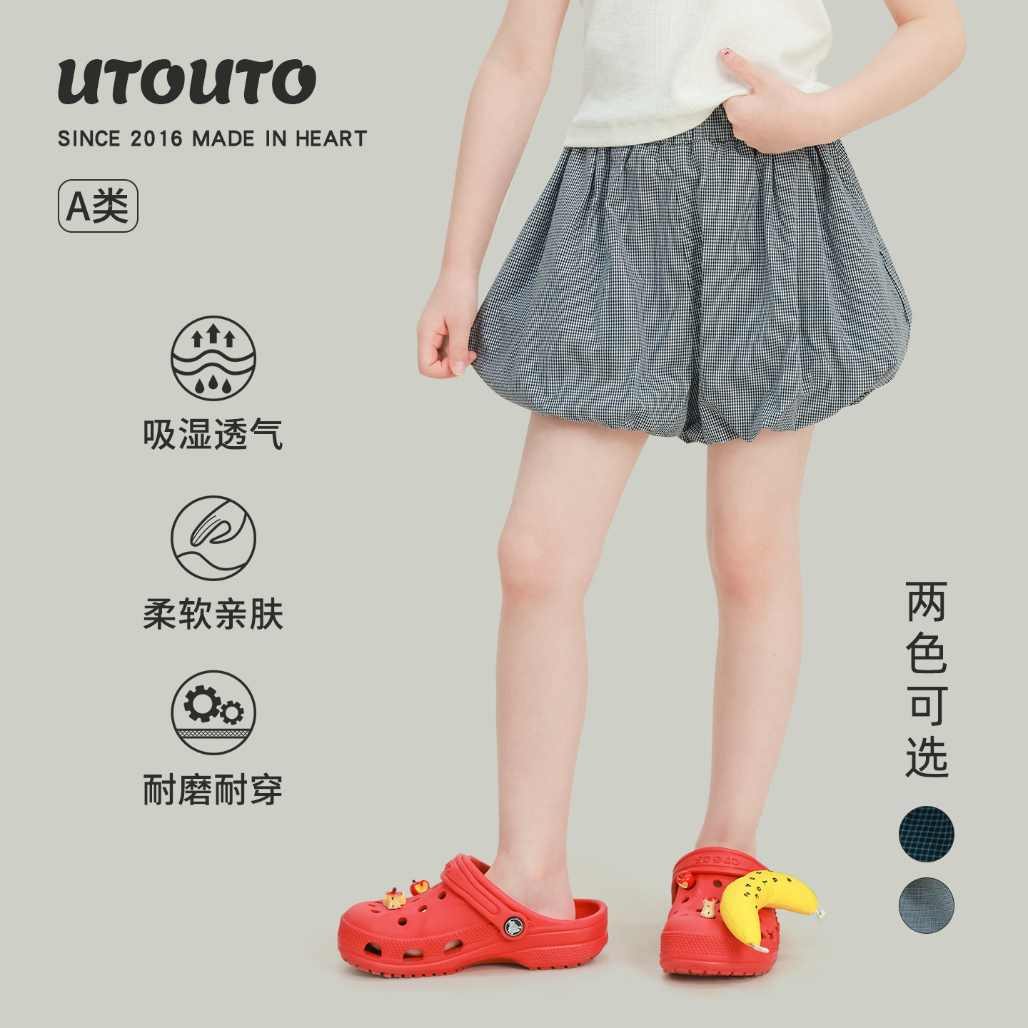 大耳象女童格纹花苞裤2026夏季新款宝儿可爱柔软亲肤百搭休闲短裤