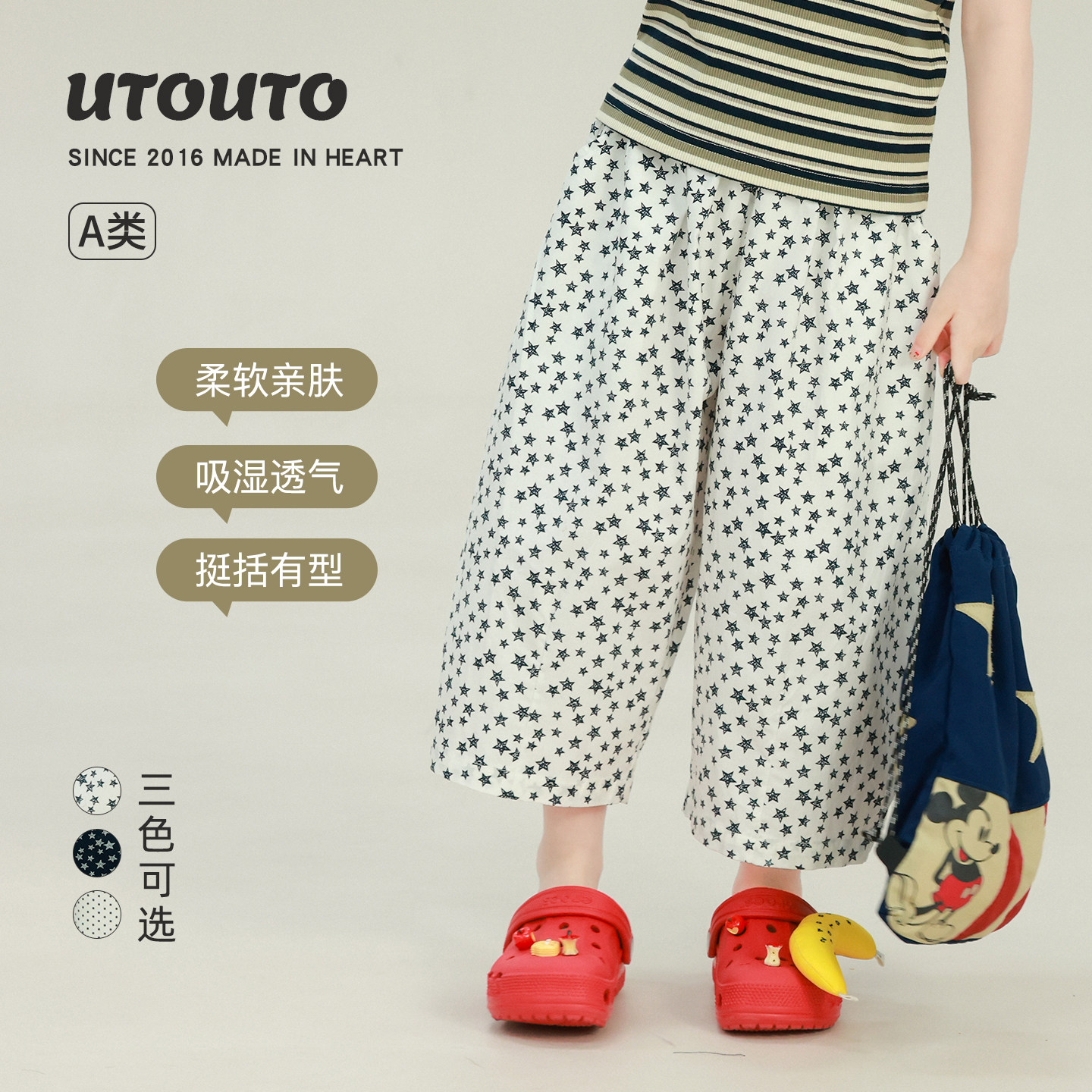 大耳象女童满印防蚊裤2026夏季新款宝儿图案宽松舒适休闲薄长裤子