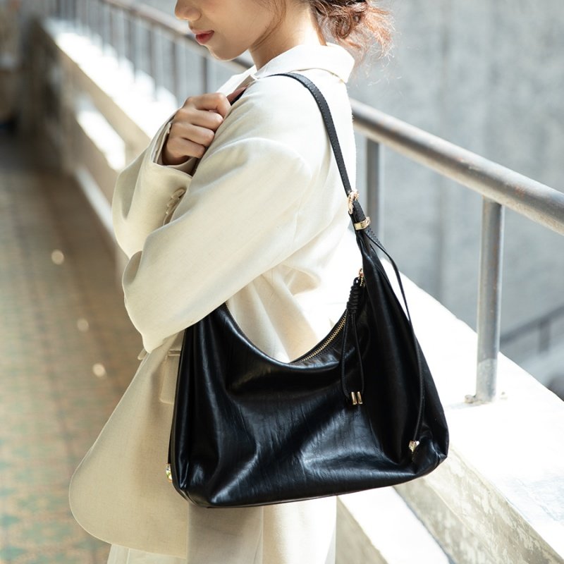 欧米OMI女包高级感头层牛皮hobo包黑色百搭通勤单肩斜挎包大容量