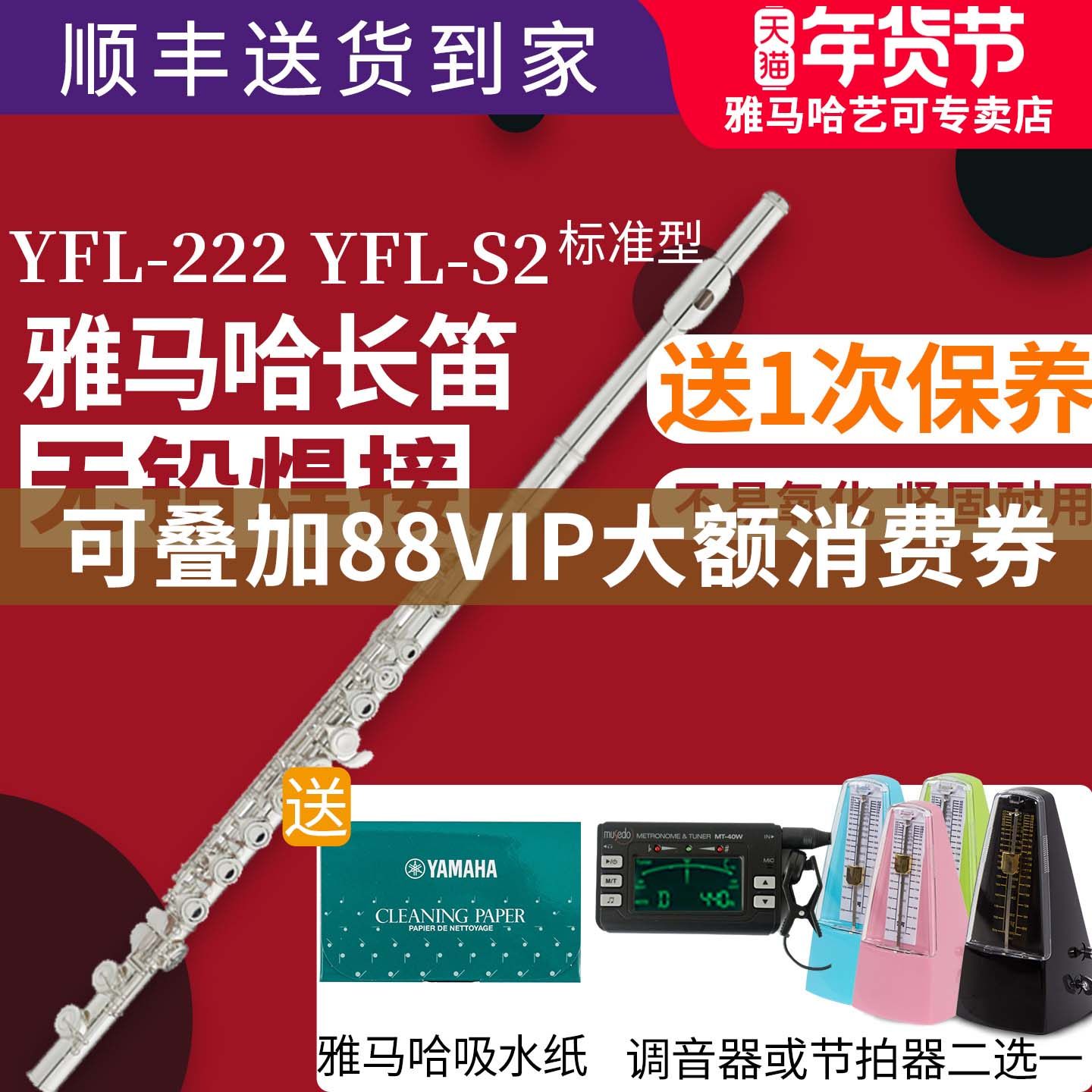 雅马哈长笛官方旗舰店YFL-222/S2标准型闭孔成人儿童初学专业表演