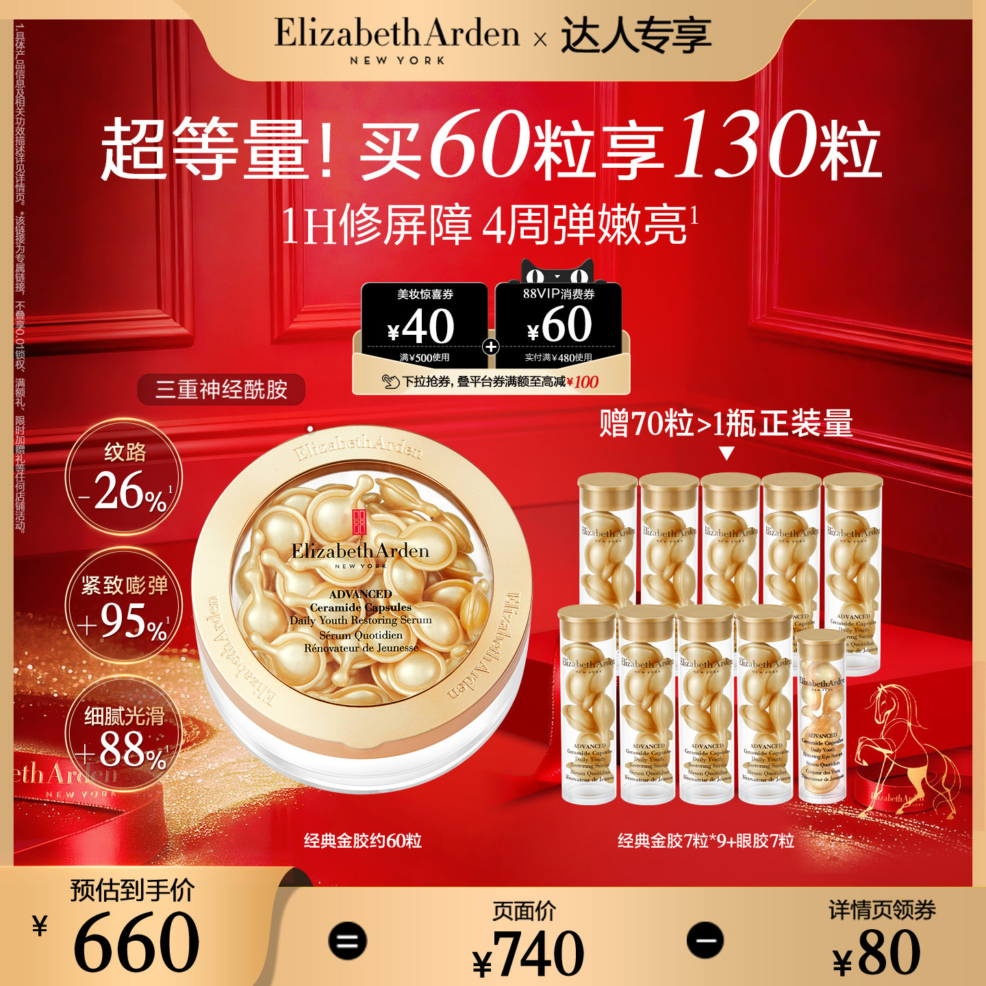 【达人专享】雅顿经典金胶精华 神经酰胺修护屏障 保湿抗皱胶囊
