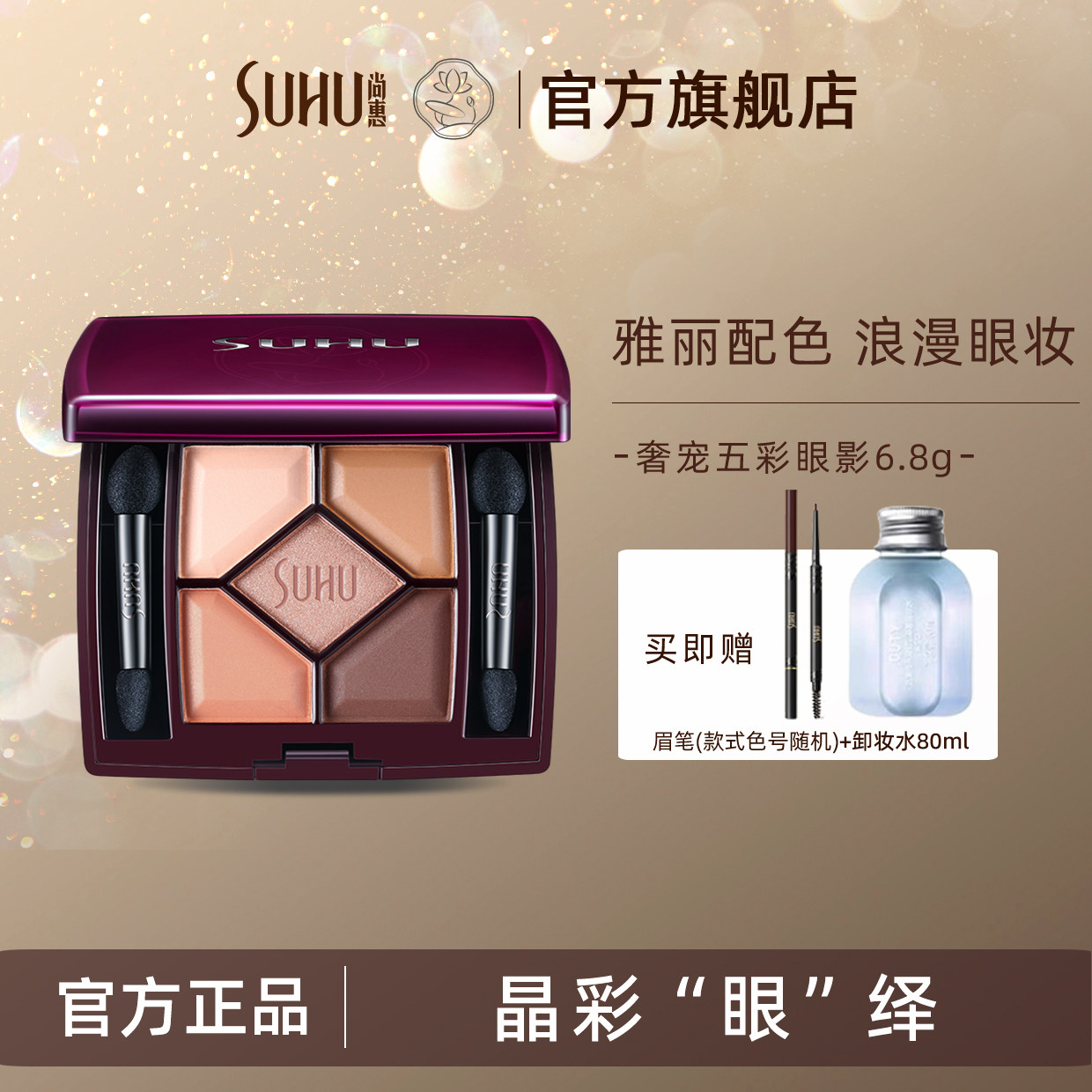 SUHU尚惠奢宠五彩眼影不易晕染珠光枫叶红棕持妆大地色系眼影盘