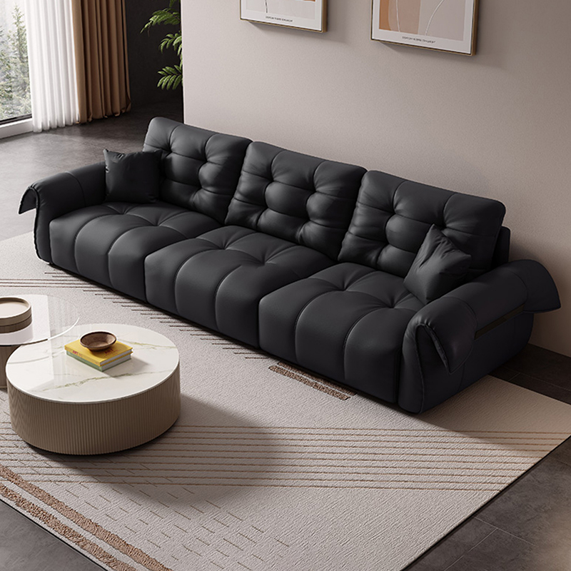云朵真皮沙发现代头层牛皮客厅中古风新款多功能三人直排沙发黑色