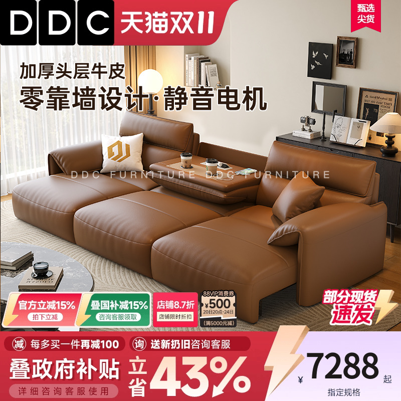 政府补贴DDC电动功能真皮沙发零靠墙客厅简约现代可调节影院沙发