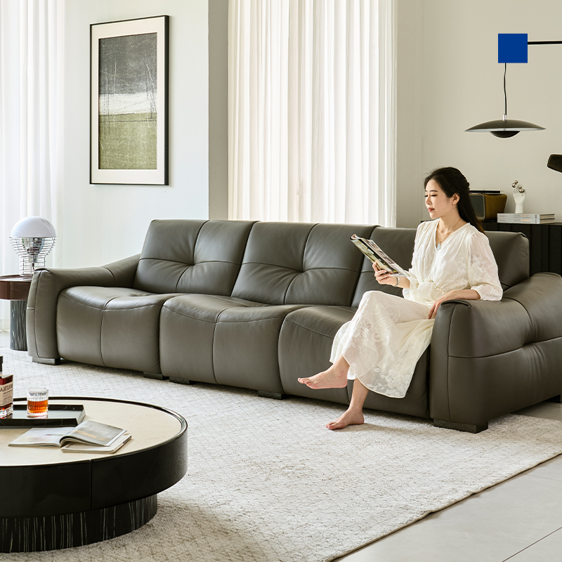 YS天禧派双电动功能真皮沙发零靠墙头层厚牛皮意式简约复古风7080