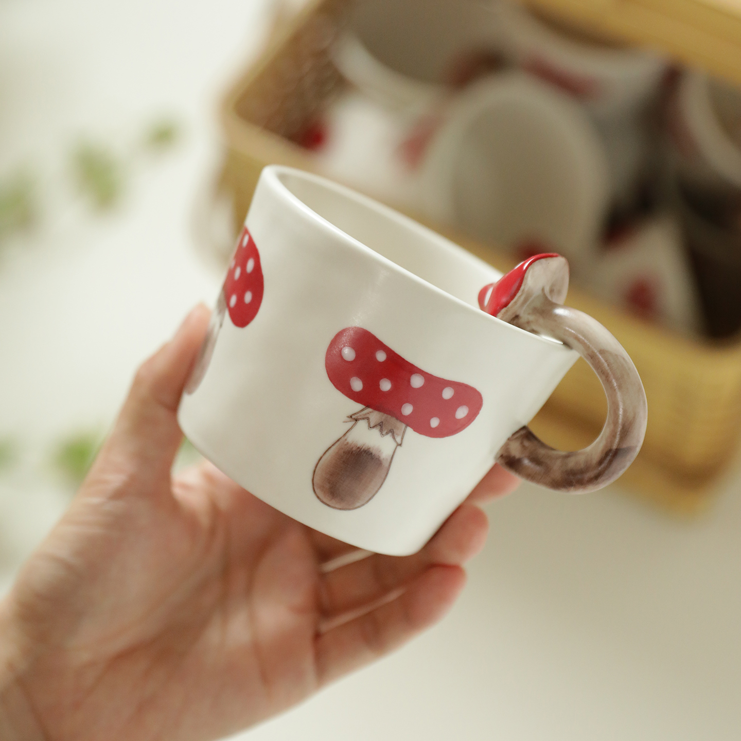 ins创意手绘蘑菇陶瓷马克杯早餐杯特别好看的咖啡杯女生生日礼物