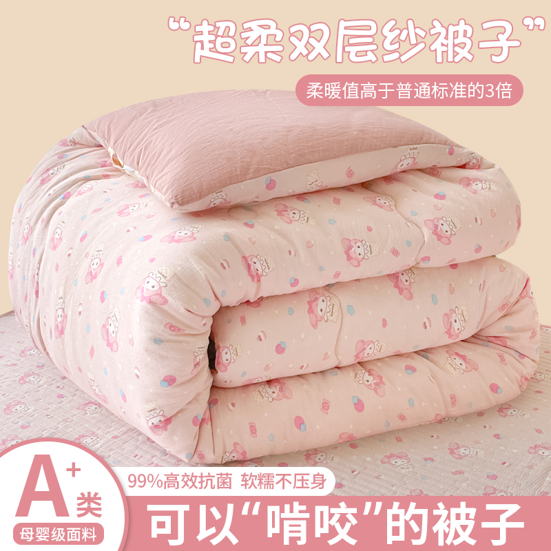 A类双层纱被子被芯春秋被加厚保暖冬被单双人家用卧室租房四件套3