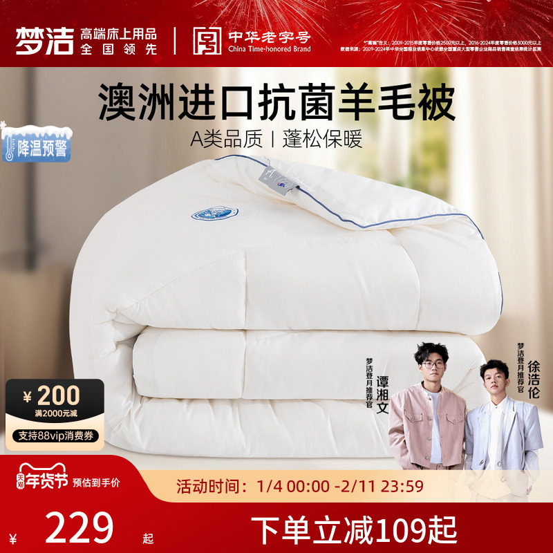 罗莱家纺澳洲进口100%纯羊毛被防螨抗菌春秋四季宿舍被芯被子冬被