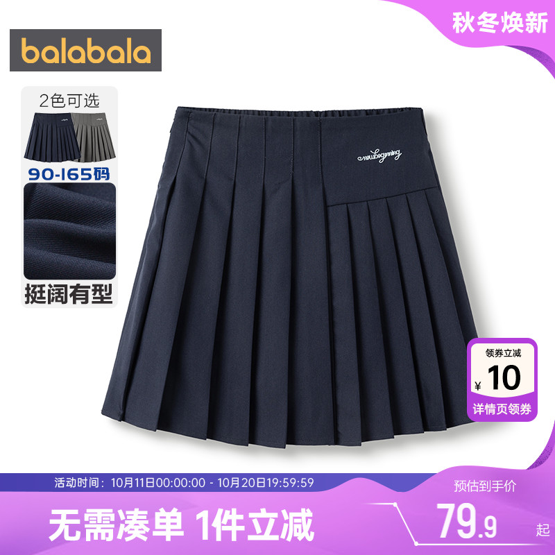 巴拉巴拉儿童裙子春秋装童装女童短裙百褶半身裙学院风舒适百搭萌
