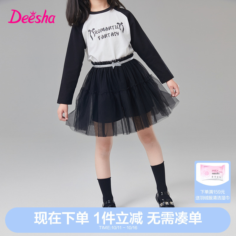 笛莎官方童装女童半身裙春秋季新款大童女孩儿童洋气时尚纱裙裙子