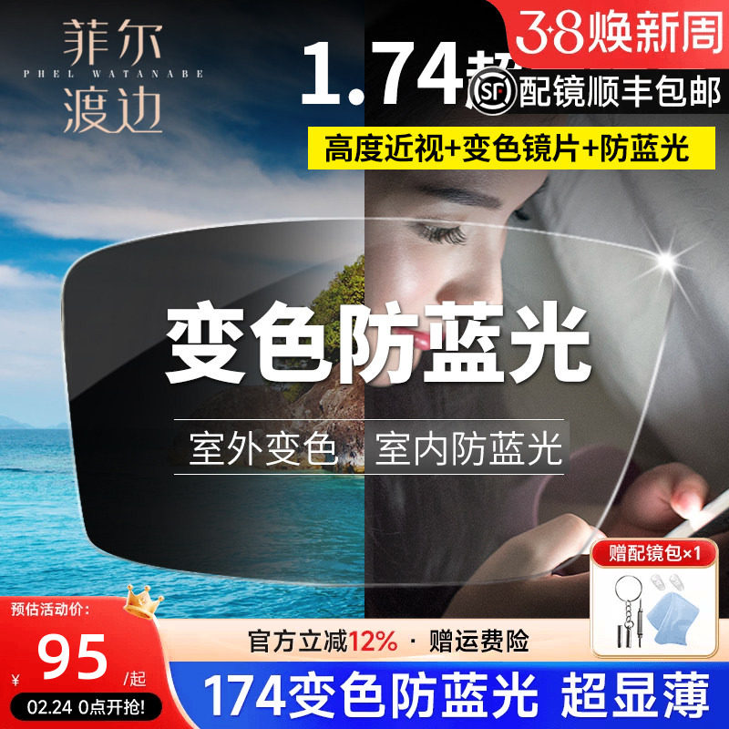 普视顿官方旗舰店1.74超薄非球面配眼镜防蓝光成品近视眼镜片变色