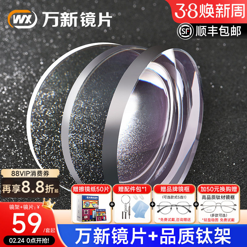 万新镜片非球面超薄高清1.74高度数近视1.67配眼镜官方旗舰