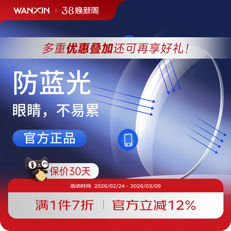 万新镜片1.74超薄非球面防蓝光防辐射高度数近视镜片配眼镜旗舰店