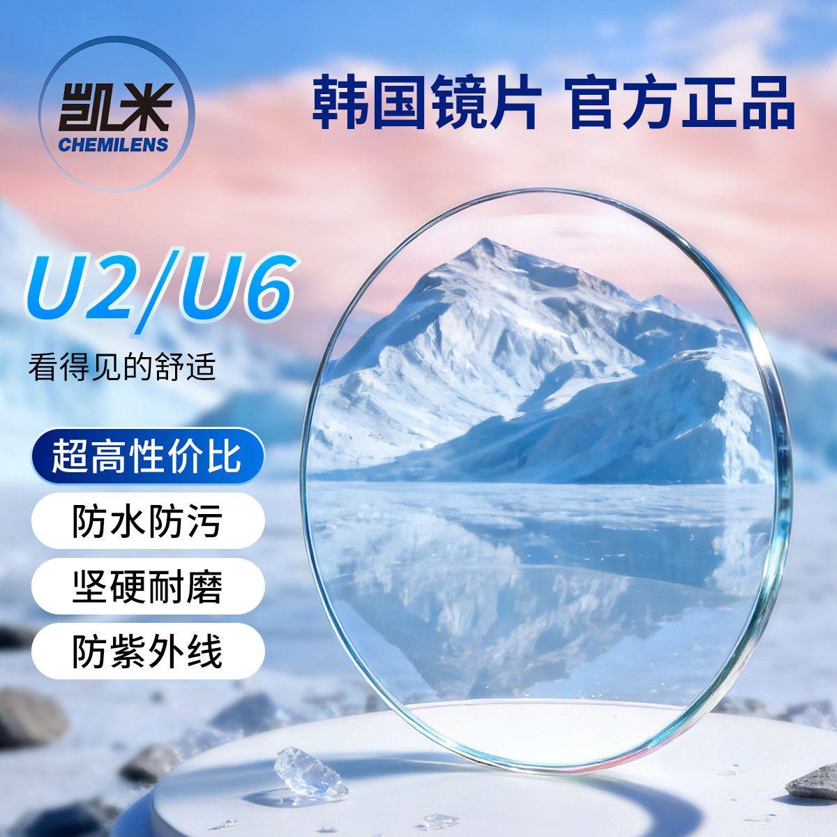 韩国凯米镜片超薄1.74眼镜片U2官方旗舰防蓝光1.67非球面U6近视镜
