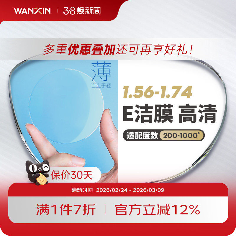万新镜片1.74超薄非球面E洁膜高清1.67高度近视散光配镜官方旗舰