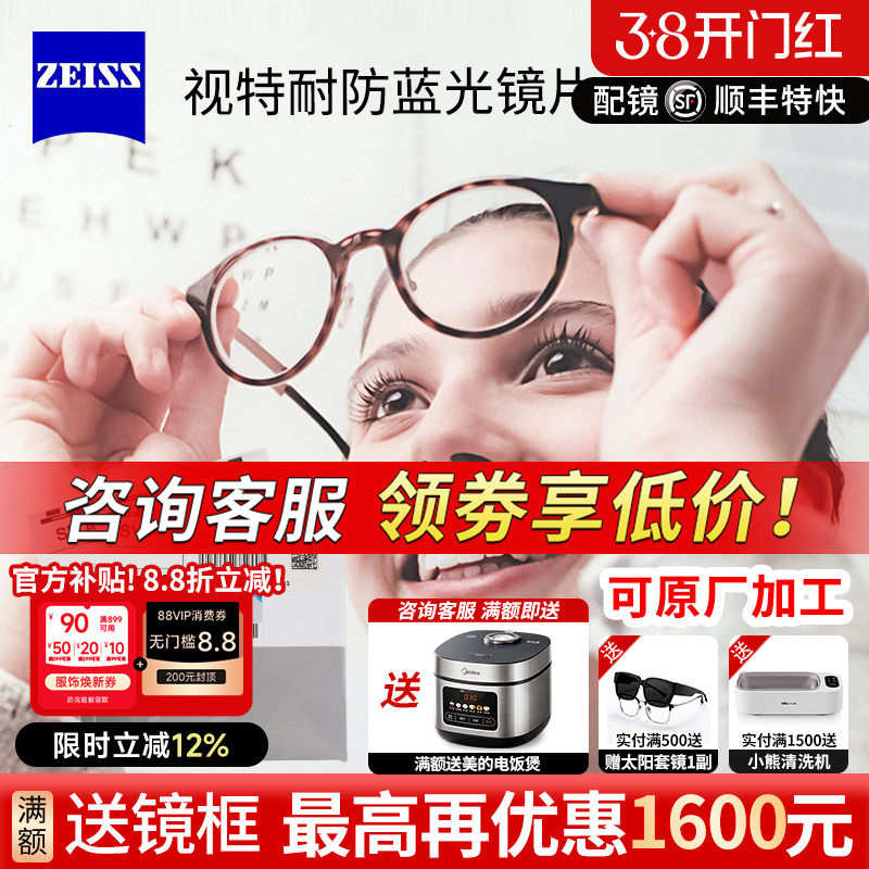 蔡司镜片近视高清超薄1.67防蓝光1.74非球面视特耐眼镜官方旗舰店