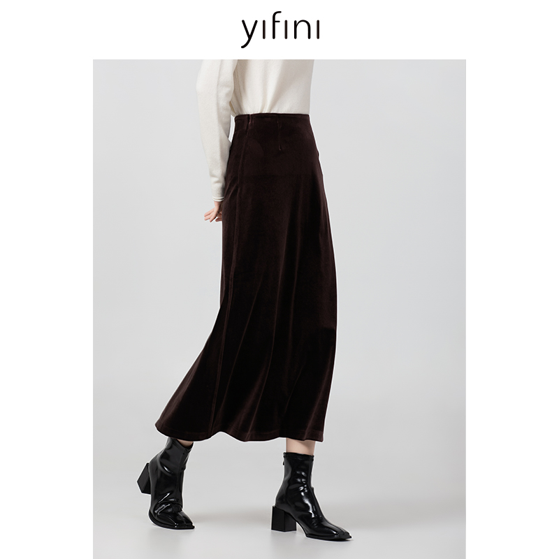Yifini/易菲宽松开叉A型中长半裙女秋冬新款气质优雅半身裙子