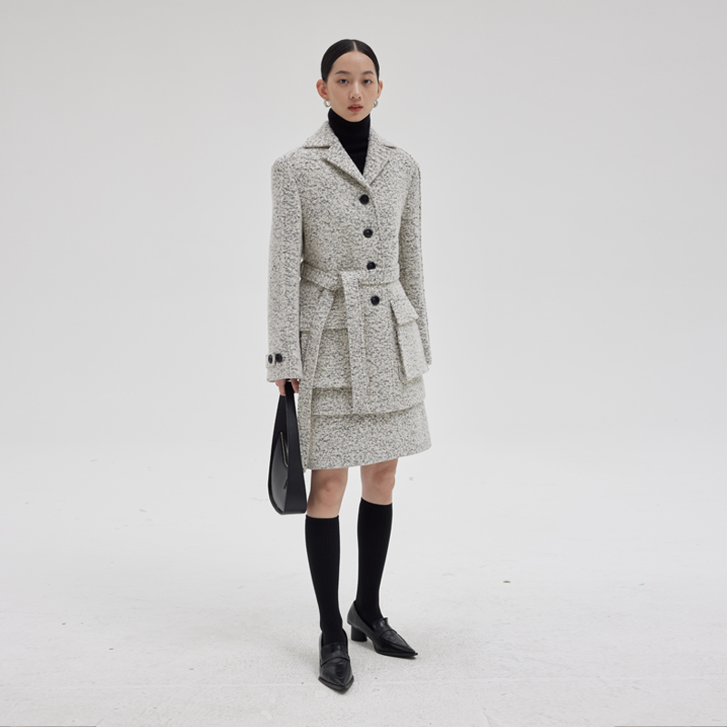 BLANK LABEL时髦A型中性色调 羊毛混纺噪点粗花呢半身裙秋冬短裙