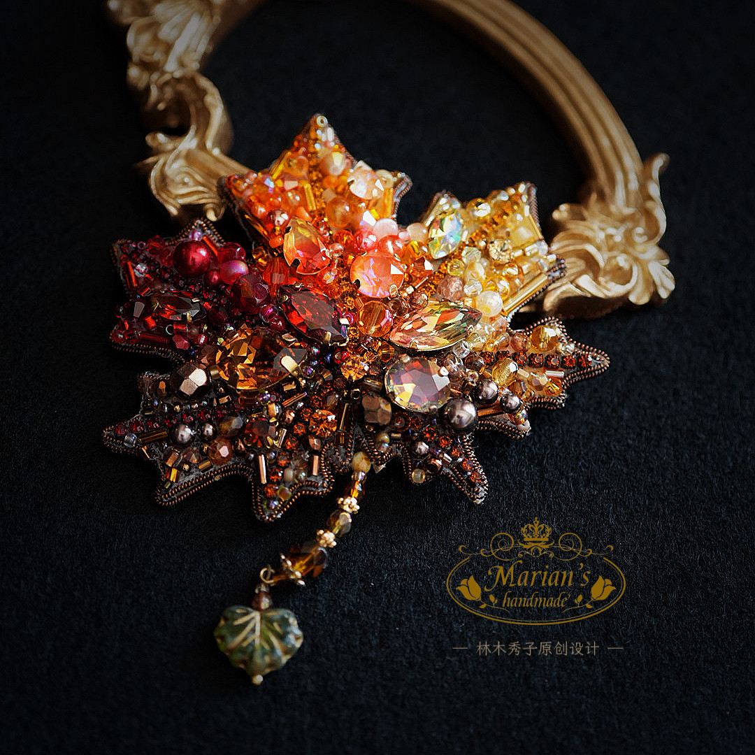原创枫叶珠宝感满钻手工刺绣胸针配饰DIY珠绣刺绣材料包含课程