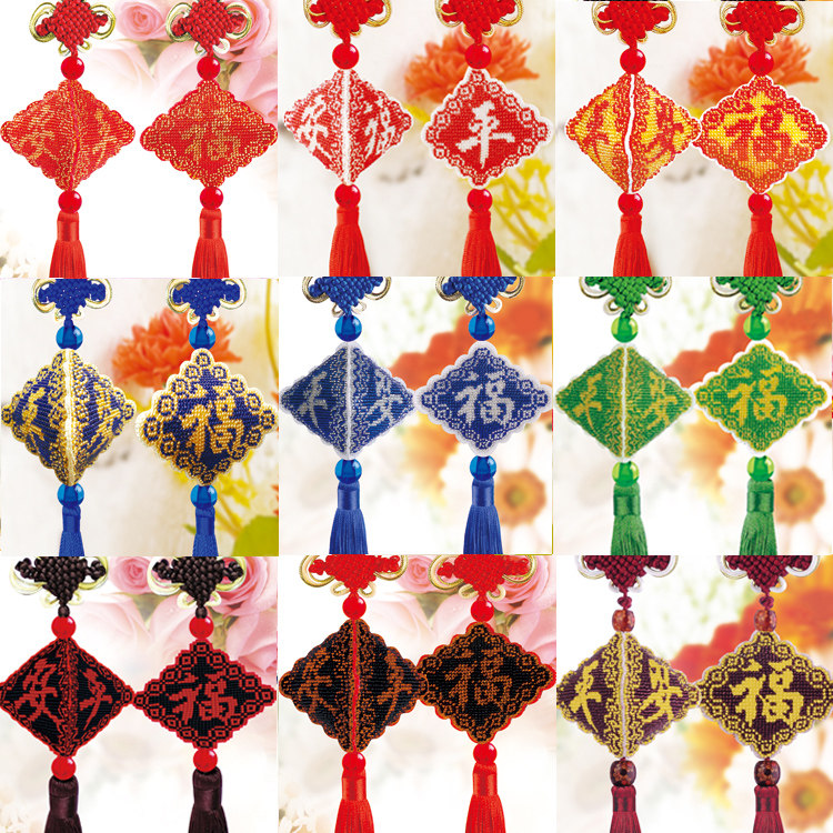 珠绣汽车挂件平安福十字绣串珠福字小件挂饰手工DIY自己绣平安符