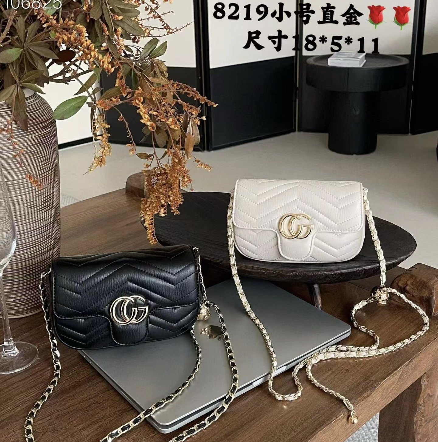 新款时尚潮流百搭高级感单肩斜挎包真皮8219小香风菱格链条小包