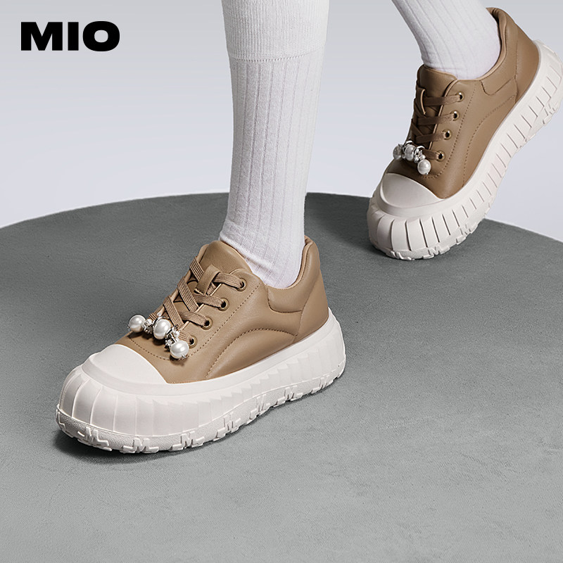 MIO米奥女鞋2025春季芭蕾风德训鞋珍珠装饰优雅舒适休闲运动板鞋