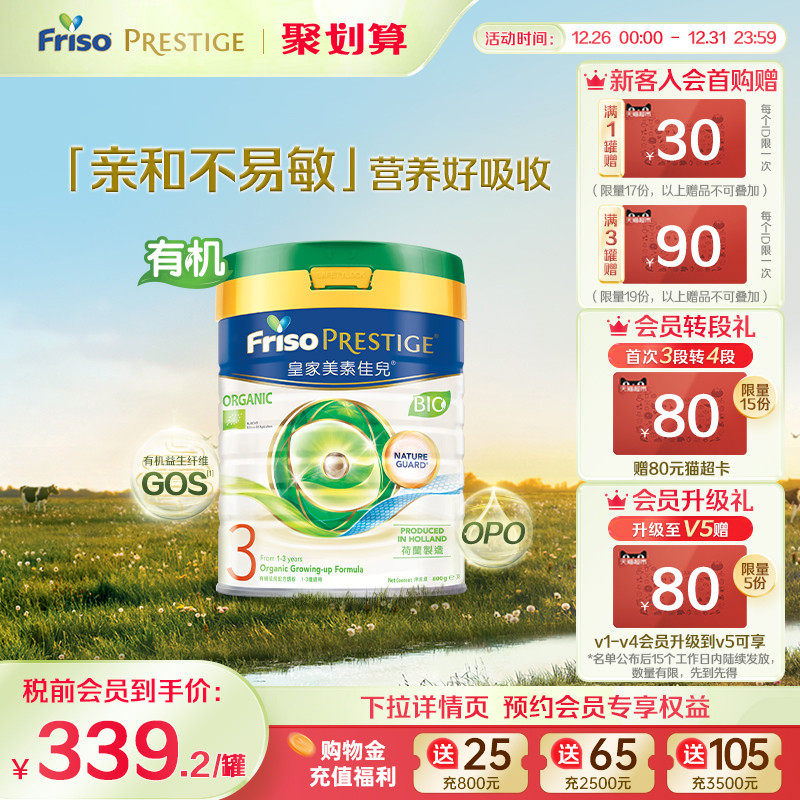 【新客专享】皇家美素佳儿3段港版DHA荷兰进口三段有机牛奶粉800G