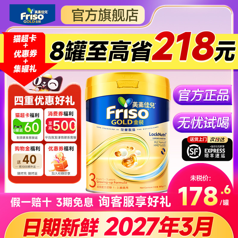 美素佳儿3段港版金装荷兰进口正品婴幼儿配方牛奶粉1~3岁可购24段