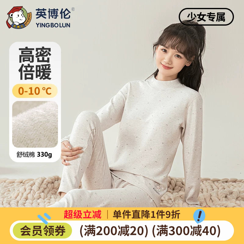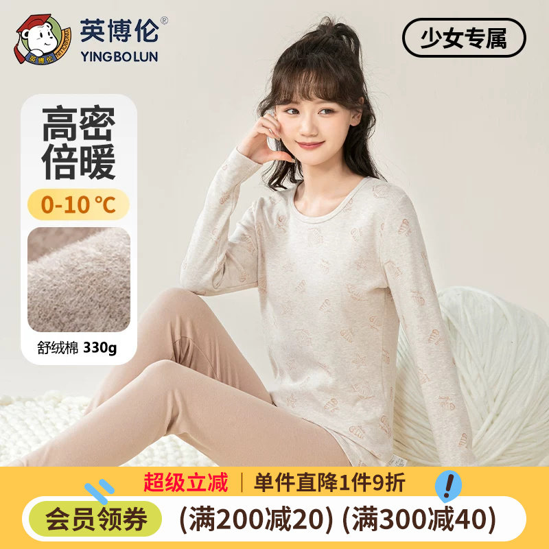 英博伦少女内衣套装纯棉保暖女大童秋衣秋裤女学生全棉睡衣棉毛衫
