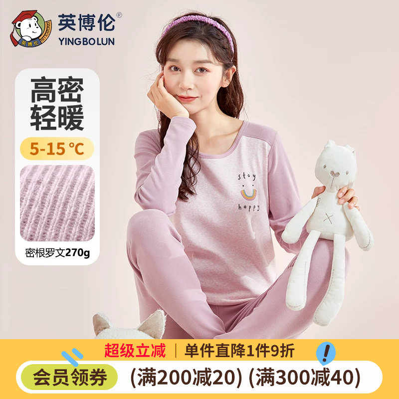 英博伦秋冬全棉少女内衣家居服套装秋衣裤保暖纯棉薄款睡衣大女童
