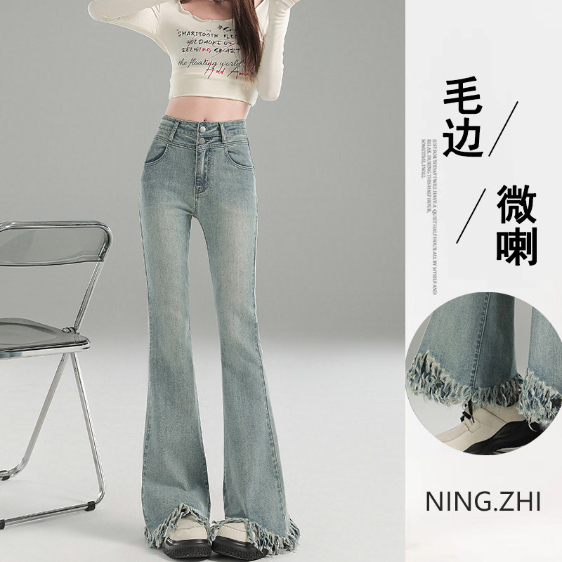 喇叭裤女2025春秋新款流苏毛边微喇牛仔裤女韩版高腰弹力九分垂感
