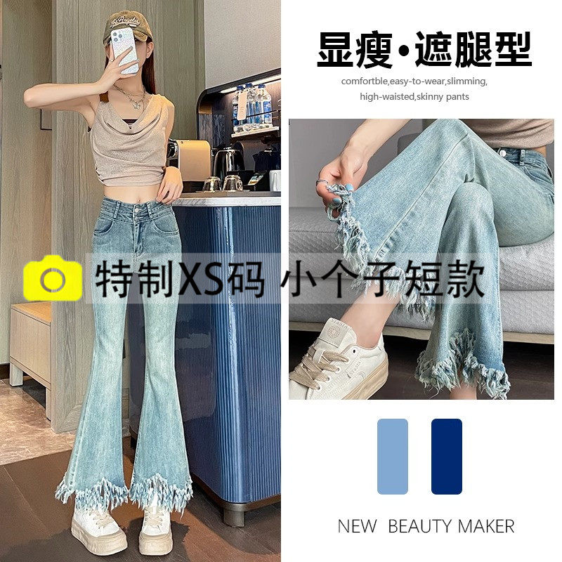 流苏微喇牛仔裤女夏季薄款2025年高腰显瘦小个子马蹄九分喇叭裤子