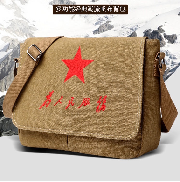 为人民服务斜挎帆布包新款帆布单肩斜跨包雷锋五角星包红军包复古