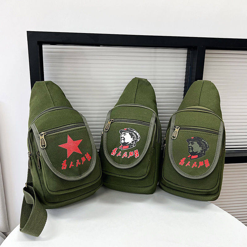 怀旧红军包雷锋包为人民服务毛主席包解放军挎包绿书包帆布五星包