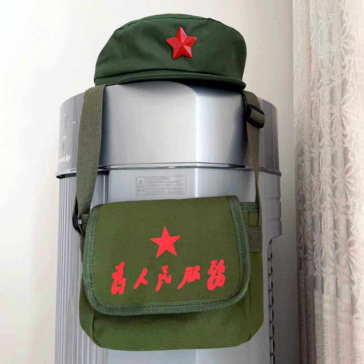 为人民服务斜挎帆布包80年代知青帽子演出道具70军绿书包雷锋帽