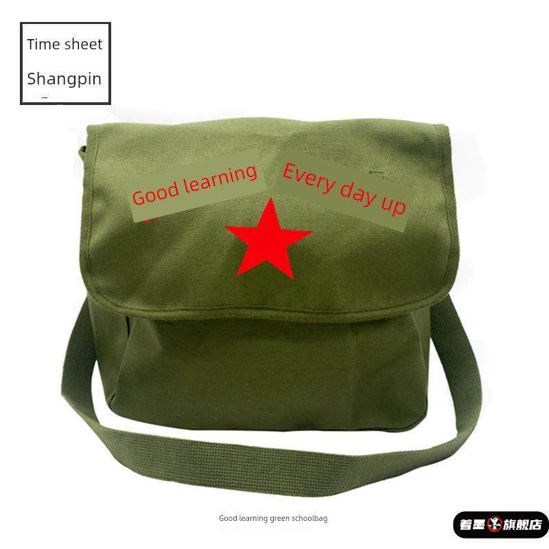 复古风帆布包青年单肩休闲斜挎为人民服务怀旧雷锋书包儿童解放包