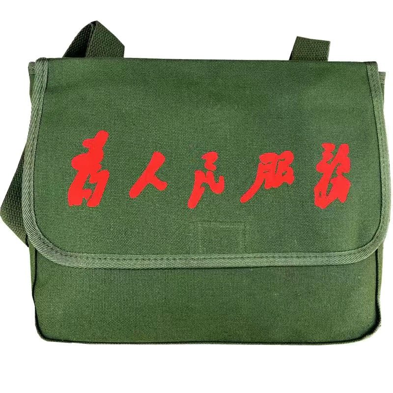 为人民服务斜挎帆布包学生邮差包军绿学院风怀旧复古书包雷锋背包