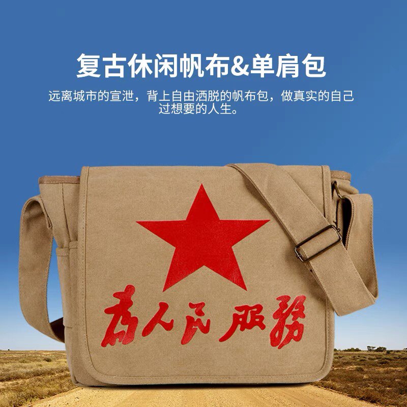 为人民服务帆布包怀旧老式单肩可斜跨休闲包文艺小众五角星男复古