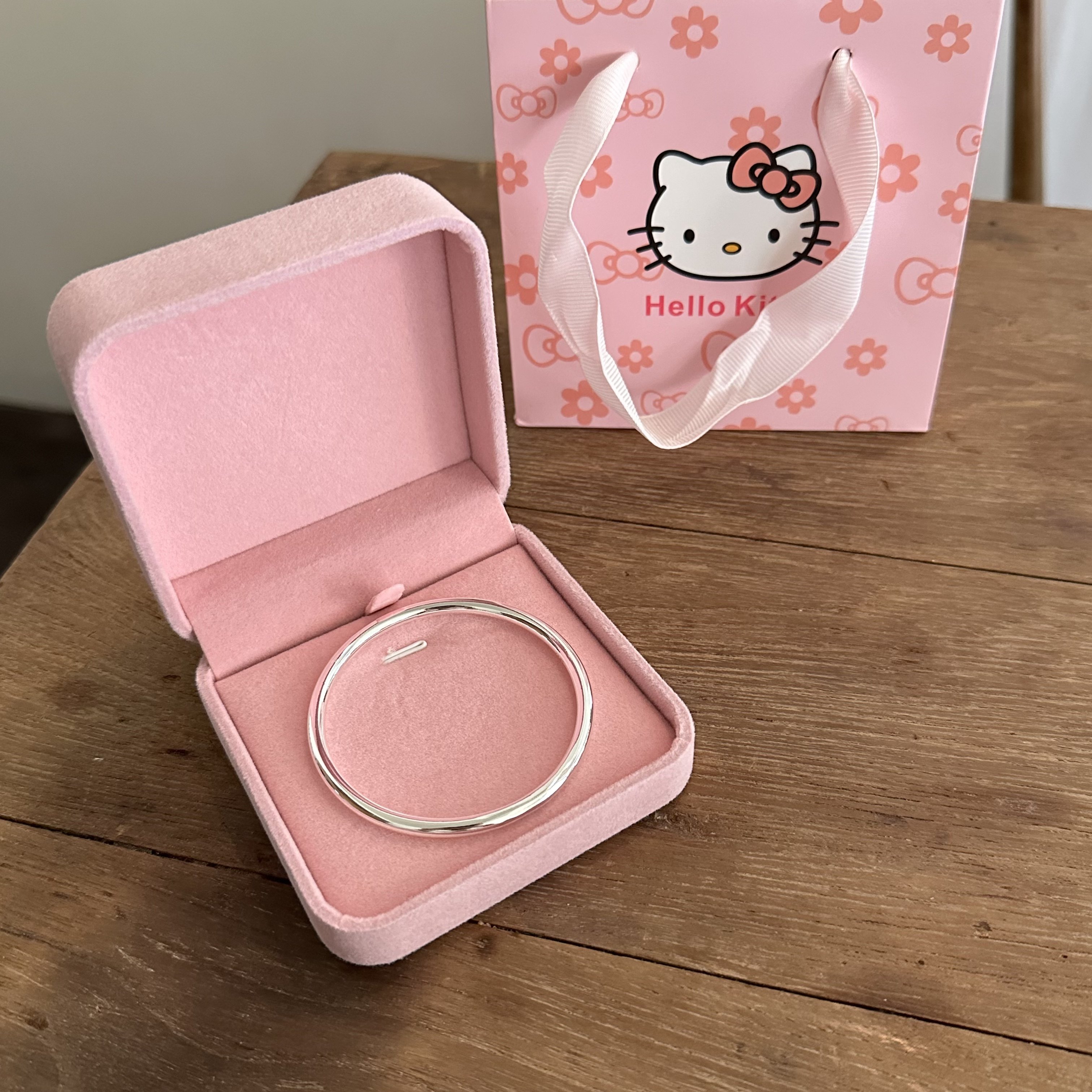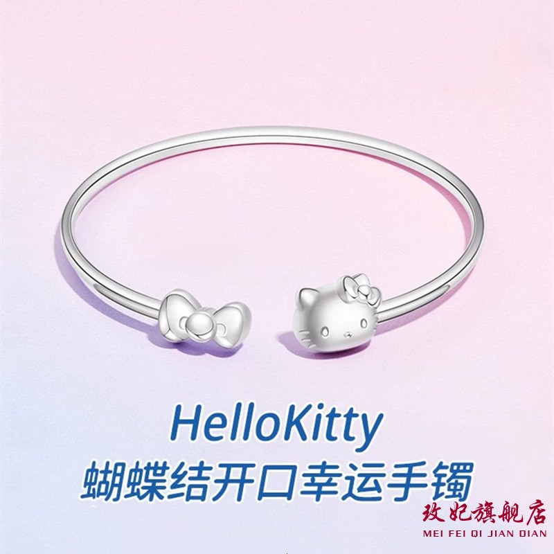 香港正生kt猫开口纯银手镯甜美可爱女宝宝小孩子中大童学生成人款
